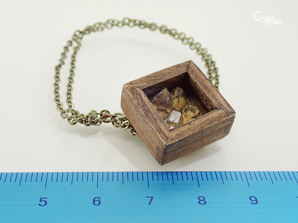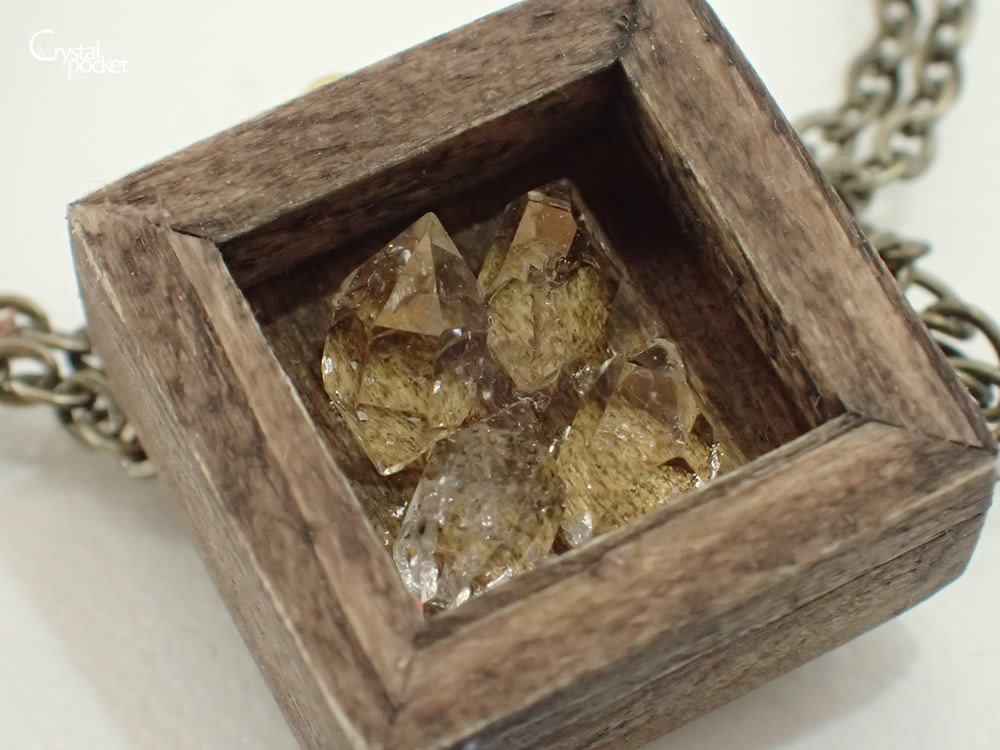 鉱物アクセサリー 木枠ネックレス 水晶4個